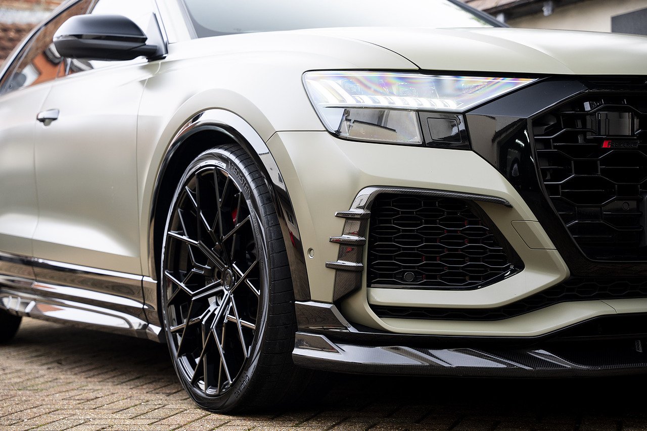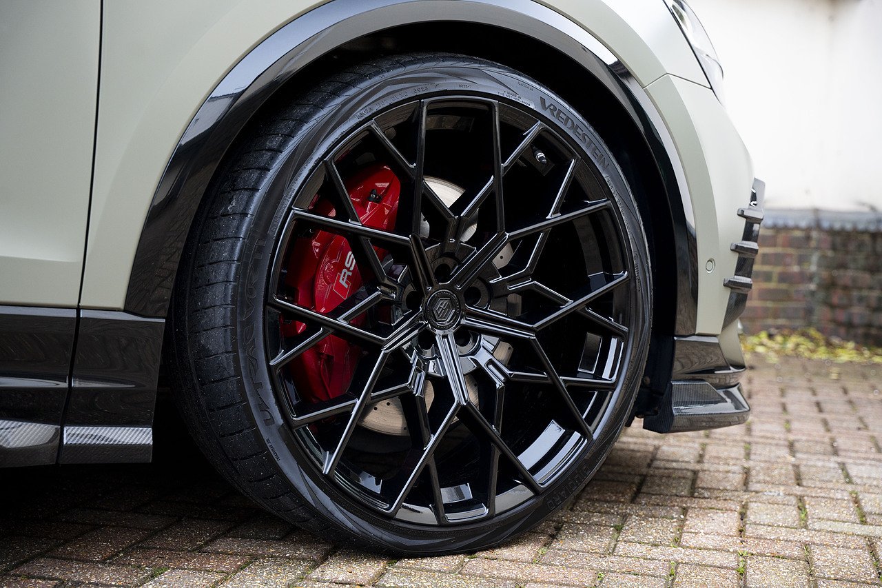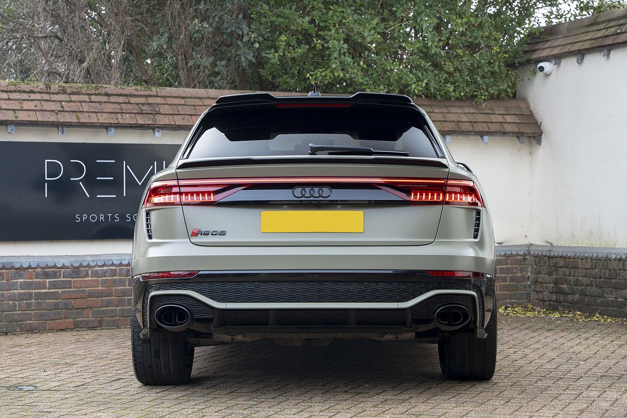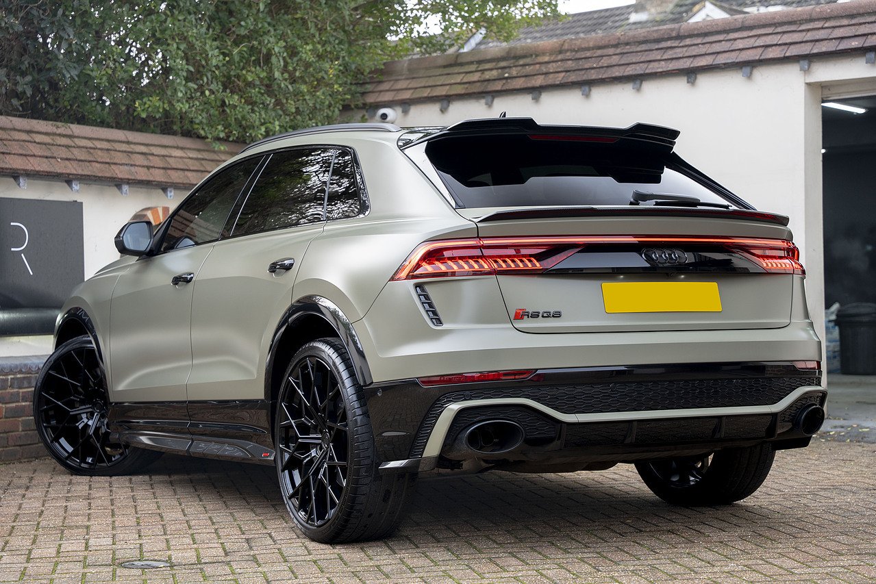 The Urban Automotive kit gives the RSQ8 a much sharper presence, with carbon fibre detailing throughout including the front bumper apron, vent eyebrow blades, side sill extensions, rear canards, upper rear wing and lower deck lid spoiler. It adds just the right amount of edge without being over the top.