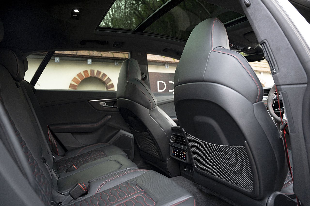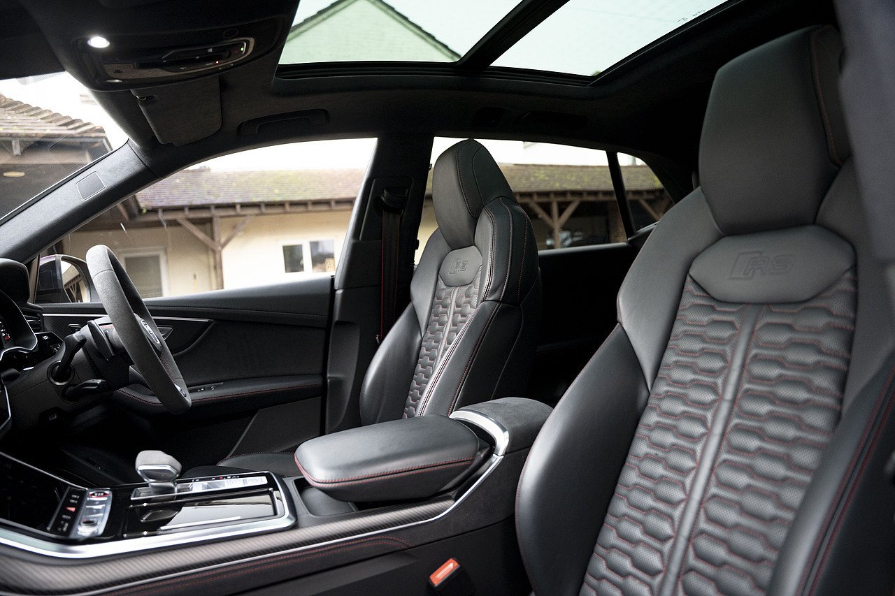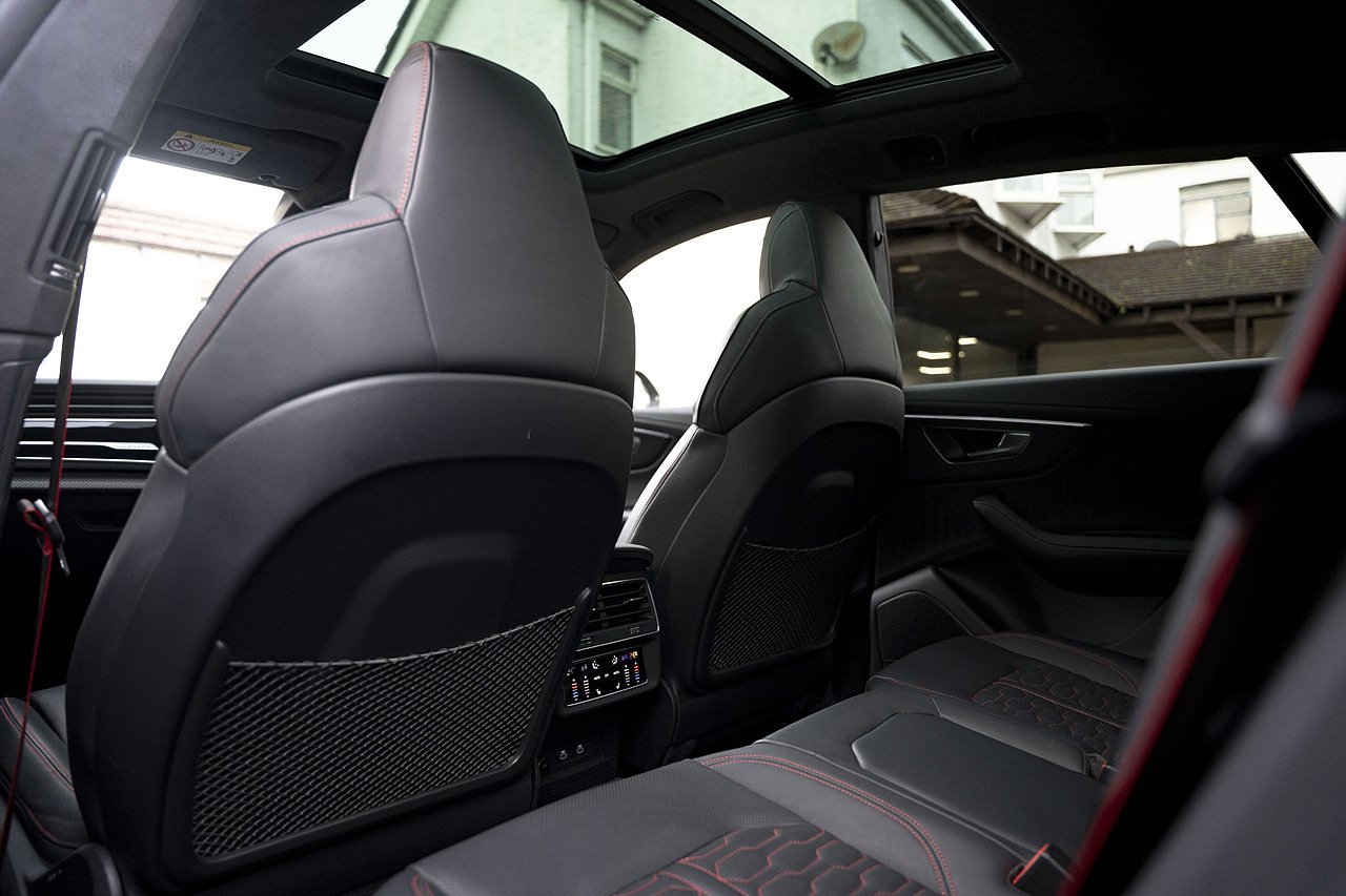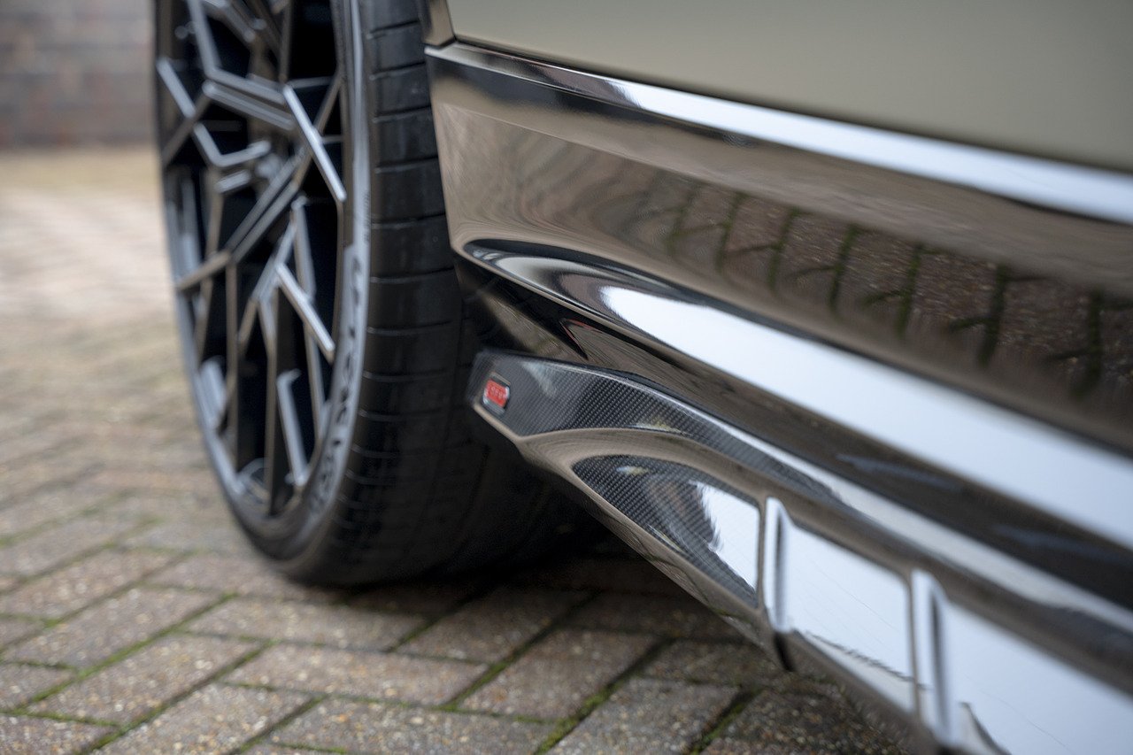 The Urban Automotive kit gives the RSQ8 a much sharper presence, with carbon fibre detailing throughout including the front bumper apron, vent eyebrow blades, side sill extensions, rear canards, upper rear wing and lower deck lid spoiler. It adds just the right amount of edge without being over the top.