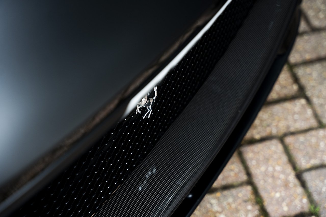 Finished in Nero Purosangue (currently wrapped satin black with a carbon PPF stripe), this example commands attention from every angle.