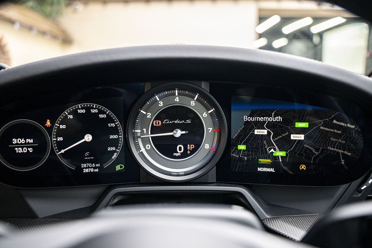 Sitting on 20-inch front and 21-inch rear 911 Turbo S Exclusive Design alloy wheels, the car also benefits from PASM Sport Suspension lowered by 10mm and the highly desirable front axle lift system, ensuring both dynamic capability and real-world practicality.